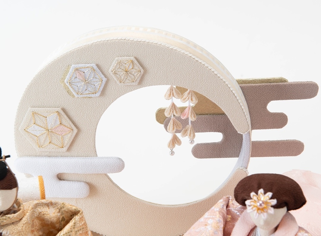 金糸で施された麻紋様には、「健康」「成長」への願いが込められています。古くから縁起の良い柄として親しまれ、節句飾りにふさわしい意匠です。