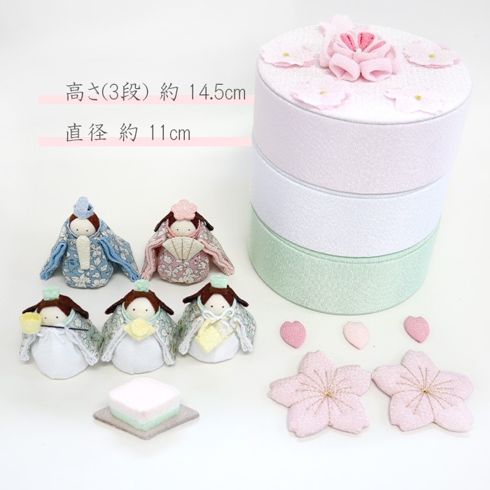 菱餅をイメージした収納ケースは、三つのステージに分かれており、お子様と一緒に飾る楽しみも広がります。飾り終わった後は、すっきり収納できる設計で、片付けも簡単です。