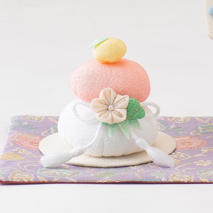 柔らかく繊細な京都ちりめんとコットン(綿)素材を使用した羽子板と鏡餅のセットで、華やかさと落ち着きを兼ね備えた節句飾りです。